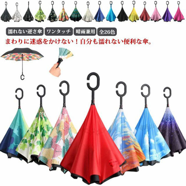 全26色 傘 逆さ傘 ワンタッチ 長傘 雨傘 自立 ジャンプ ギフト プレゼント 撥水 おしゃれ かわいい レディース メンズ 大きい 晴雨兼用 丈夫 風に強い 逆さま 濡れない 折れない さかさ傘