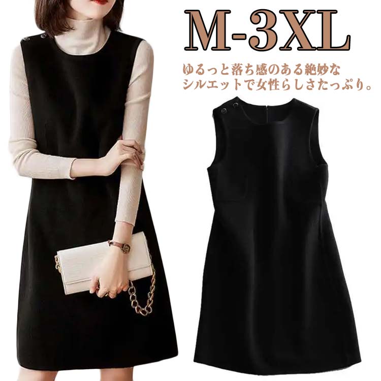 スカート 冬 ワンピース サロペット ジャンパー レディース オールインワン 膝丈 ベスト ロング 無地 ノースリーブ ゆったり 体型カバー 通勤 大きサイズ
