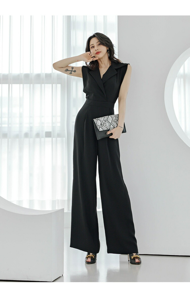 オシャレ レディース オールインワン サロペット ガウチョパンツ ワイドパンツ 大人 可愛い きれいめ 無地 ゆったり 春 秋 ブラック スーツ風 M L XL S