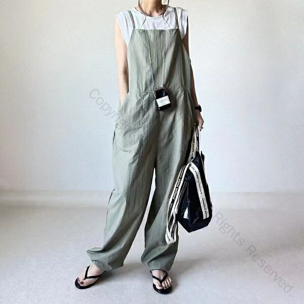 仕事に邪魔しないよう、くるぶしまで行く9分丈サロペット パンツ