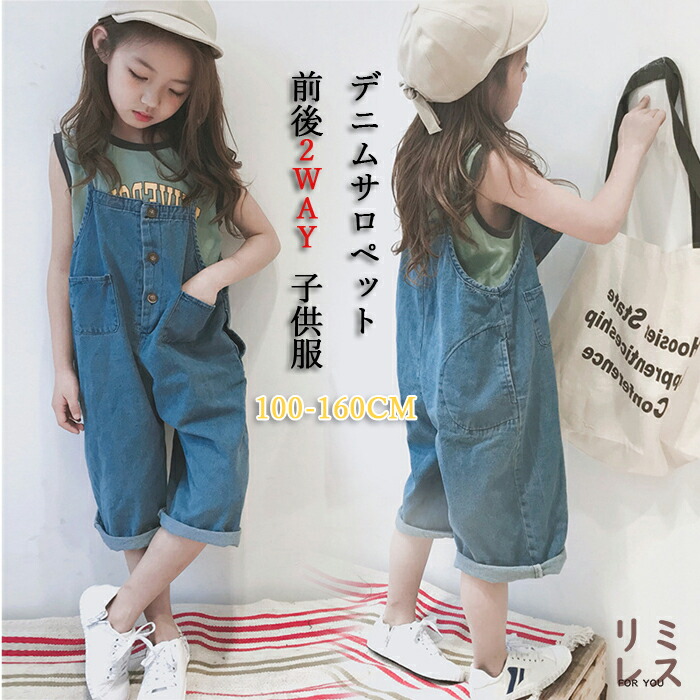 デニムサロペット オーバーオール 韓国子ども服 ジーンズ キッズ オーバーオール 可愛い おしゃれ 前後2