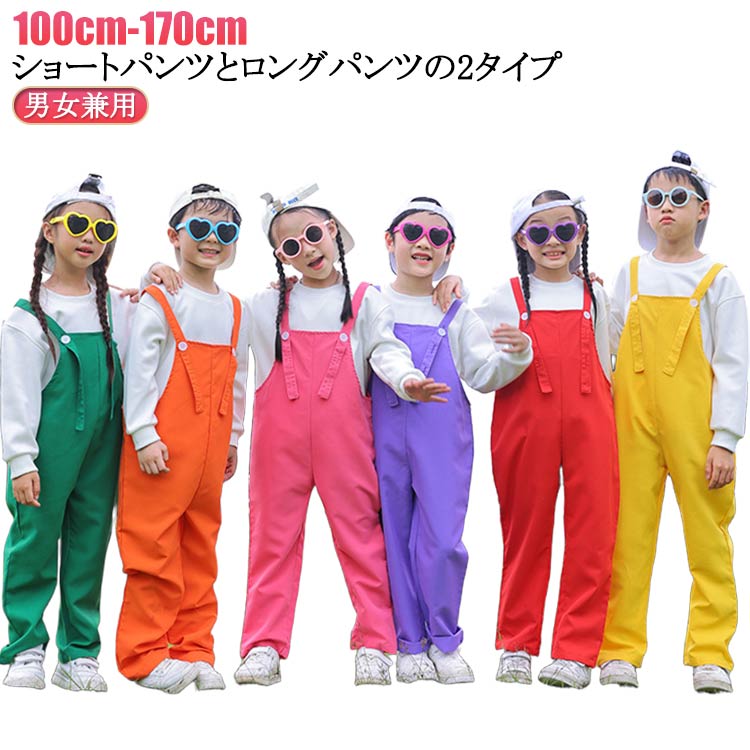 カラーパンツ サロペットパンツ 男女兼用 子供 ダンス衣装 ロングパンツ イベント 発表会 記念写真撮影 ショートパンツ ロングパンツ 100 110 120 130 140 150 160 170