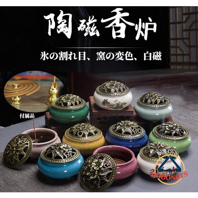 モダンレトロな丸型香炉お香立て付き 蓋付きおしゃれなフォルム シンプル おしゃれ 丸型 陶器 かわいい