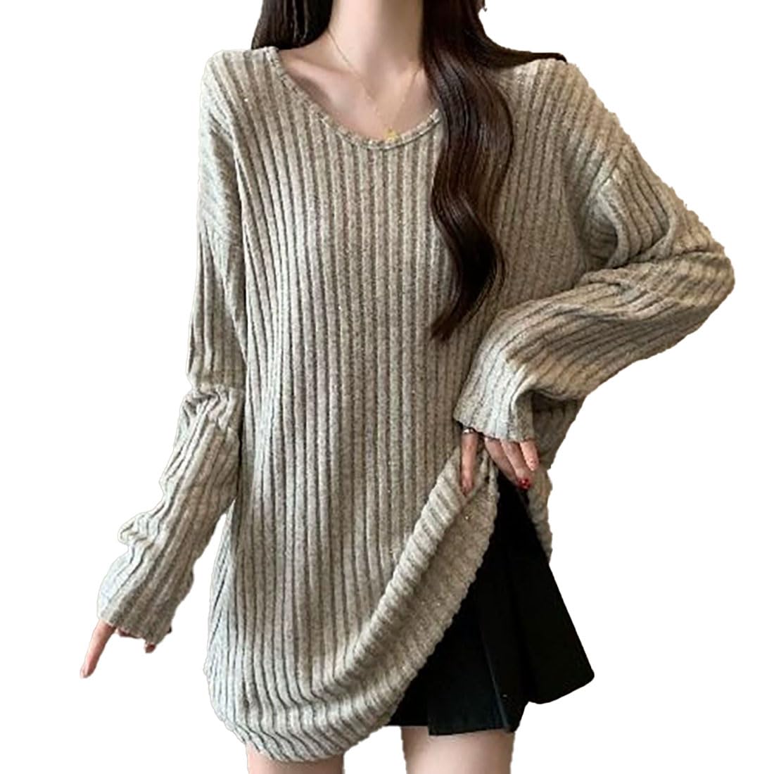 トップス シャツ ロング 丈 V ネック ニット 風 長袖 秋 春 レディース浴衣単品 カットソー