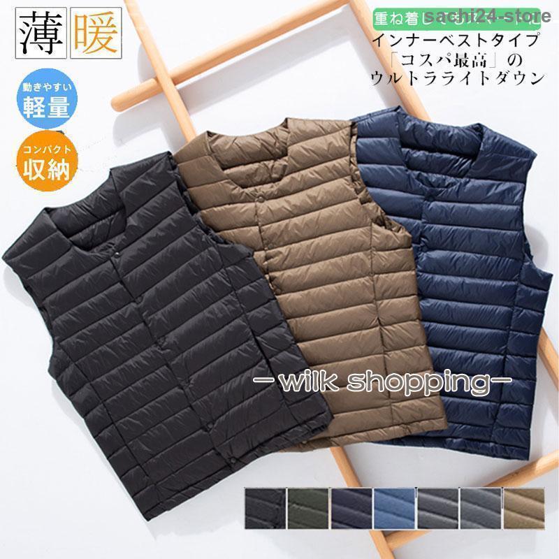 インナーダウンベスト メンズ ダックダウン入り ライトダウン ジレ 携帯ポーチ付 アウター 暖かい 仕事 ビジネス 軽い 登山 通勤