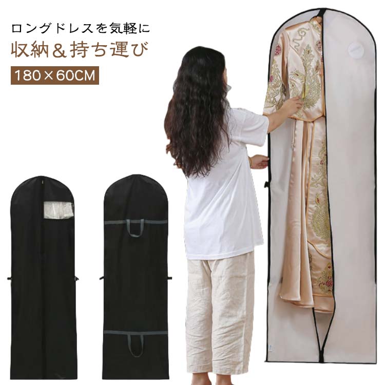 ロング ドレスカバー 衣類カバー ドレスシールド ウェディングドレス カバー 洋服カバー ドレスガーメントカバー 180×60CM 冠婚葬祭 型崩れ防止 防水 収納バッグ 手提げ付き 持ち手付き 保管
