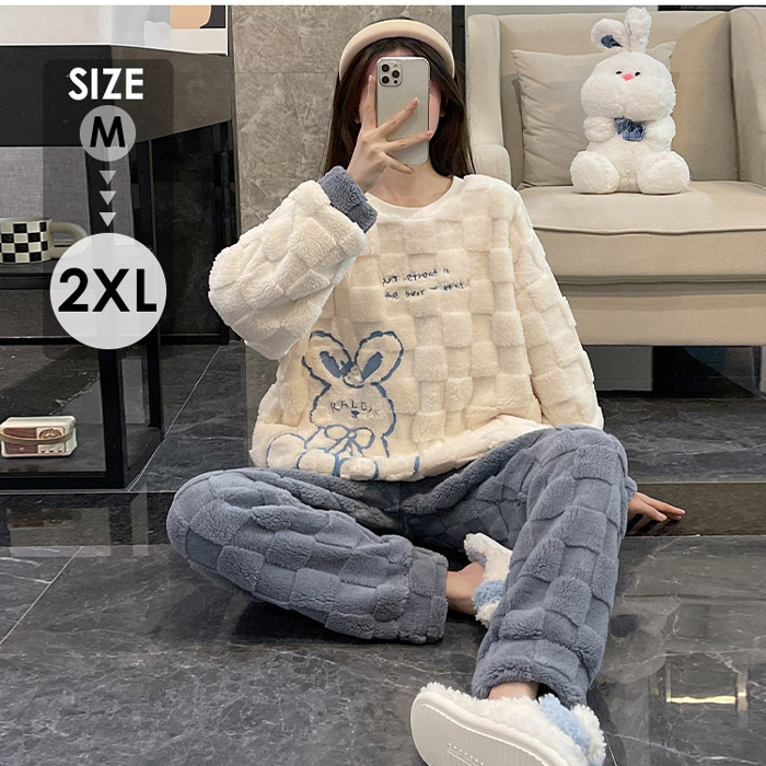 モコモコの厚手フリース素材 レディース部屋着上下セット