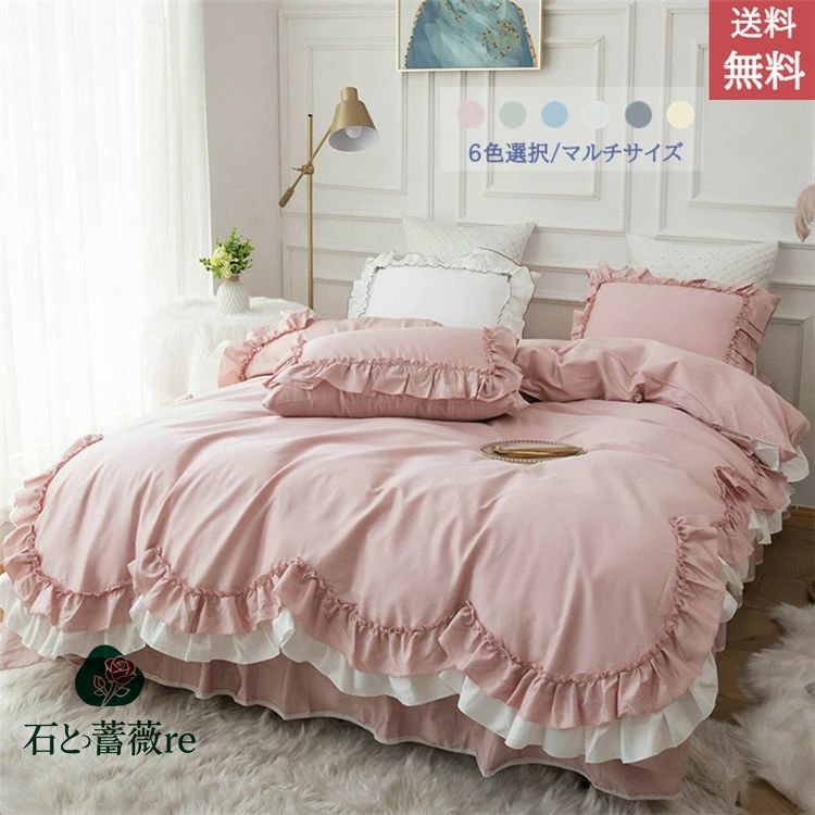 布団カバー シングル 4点セット 綿100 掛け布団カバー ダブル フリル レース 姫系 おしゃれ カバー マットレスカバー マットレ ベッド