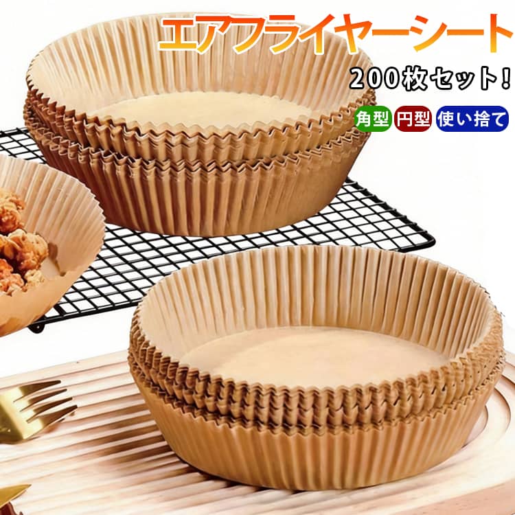 送料無料 エアフライヤー シート 200枚セット エアフライヤー 紙 200枚入り 使い捨て 耐高温 エアフライヤーシート エアフライヤー専用紙 スクエア型 円型 四角形