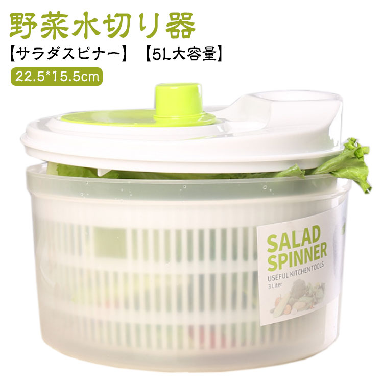 大容量 サラダスピナー サラダ 野菜水切り器 野菜 コンパクト 水切り器 ザル サラダ水切り 5L 回転 スピナー 野菜脱水機 野菜スピナー キッチン用品 調理器具 水きり 水切 料理