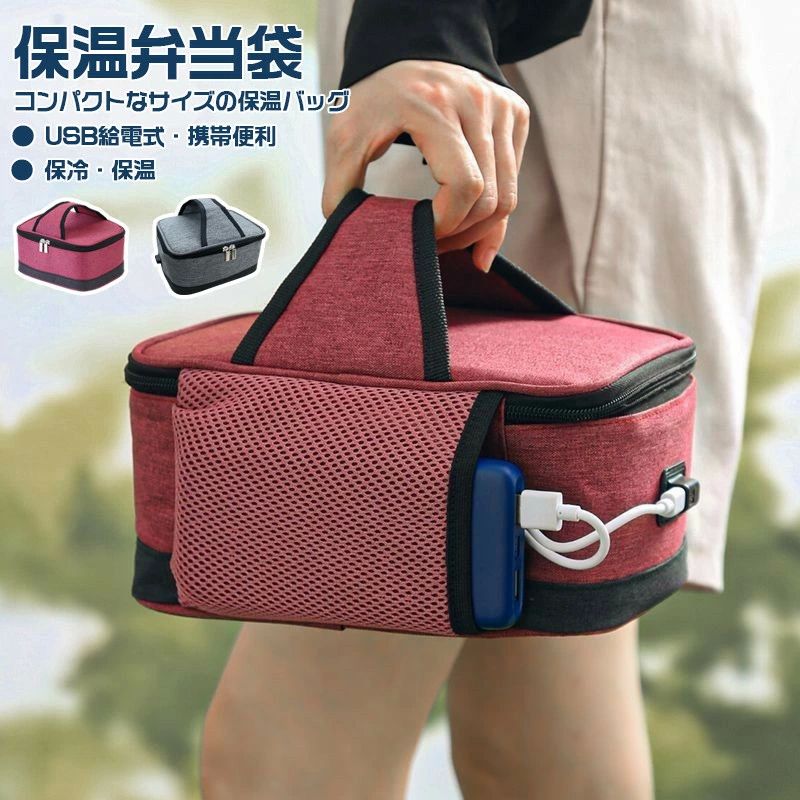 保温 加熱 弁当 ランチバッグ お弁当袋 USB 給電 ヒーター内蔵 あたたかい あたためる 温める 通学 ピクニック アウトドア 通勤