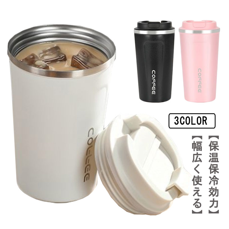 プレゼント ステンレスボトル 380ml 保冷 タンブラー おしゃれ マイボトル 持ち運び 蓋付き ふた付き 保温 マグボトル ホワイト ステンレス 真空断熱 トラベラーリッド付き アイス ホッ 水筒