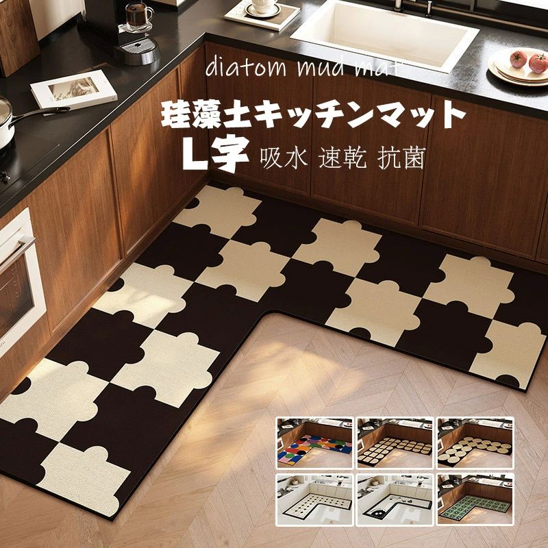 珪藻土キッチンマット L字 キッチンマット キッチン おしゃれ ソフト 洗える サ マット 大判 北欧 カーペット拭ける