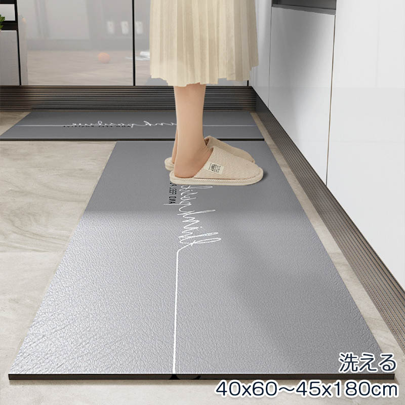 キッチンマット 180 拭ける PU革 高級感 北欧 おしゃれ 洗える 台所マット 40x60cm PU製 防水 防油 光沢 夏用 オールシーズン キッチン マット 45x18 水洗い
