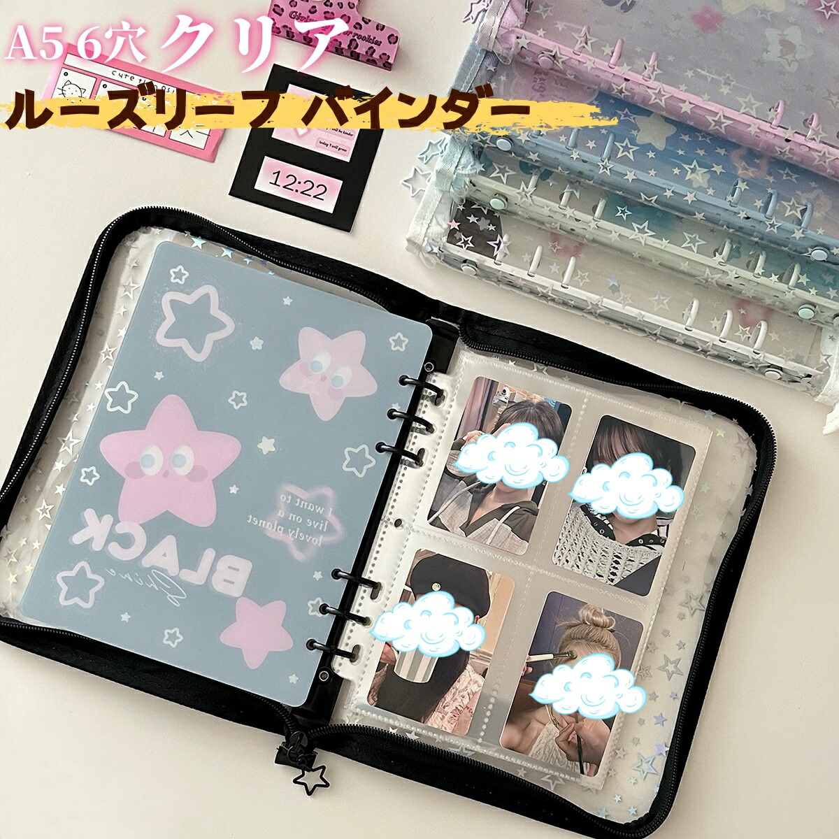 透明シール帳 キラキラ輝く シールバインダーバインダー A5 シール収納 クリアバインダー ミニサイズ 手帳 推し活グッズ リフィル10枚 防水 ホログラム星柄 DIYデコ 持ち運び便利