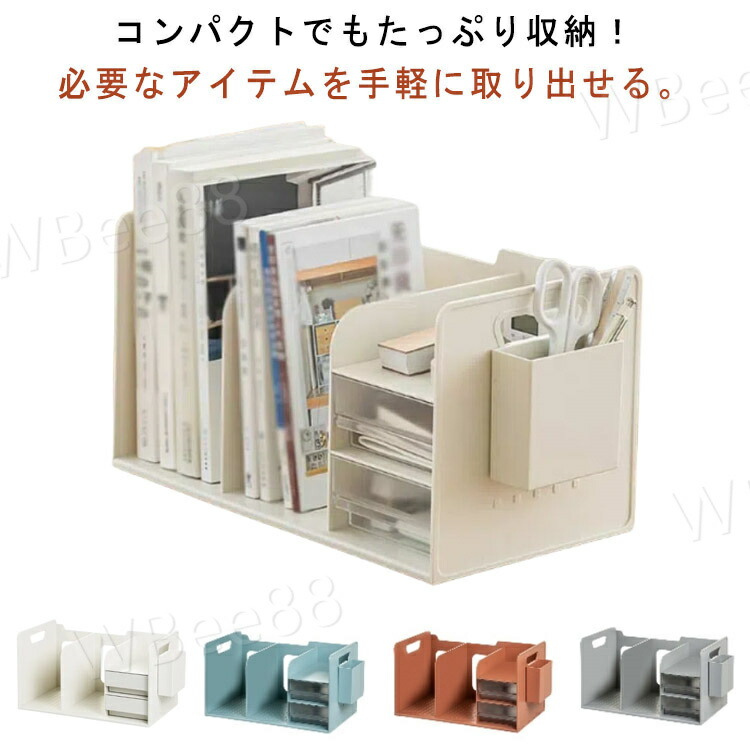 ブックスタンド 卓上 倒れない ブック収納スタンド 書類収納 収納用品 本立て 引き出し付き 卓上収納 机上 デスク上収納 書類ホルダー 本棚 卓上収納ラック デ