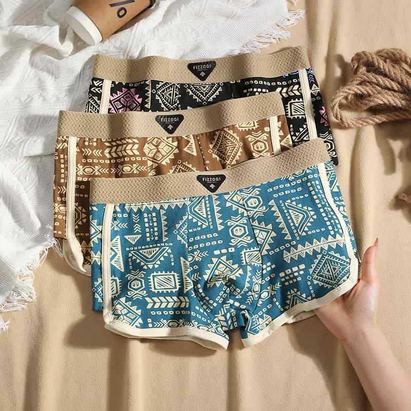 ボクサー メンズ おしゃれ 下着 パンツ 快適 民族風 レトロ 通気性 四角柄 アメリカン