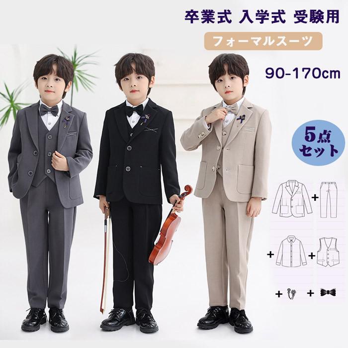 子供スーツ 男の子 5点セット ベージュ グレー 黒 90-170cm 子供 キッズ フォーマル フォーマルスーツ こども ルイ 90 100 110 120 130 150 160 170グ 140