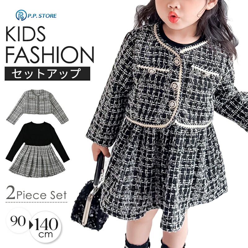 入園式 ワンピース 女の子 卒園式 子供服 セットアップ スーツ キッズ フォーマル セレモニー 入学式 卒業式 保育園 春秋冬 子供 小学校 ジャケット ツイード 小さいサイズ 七五三 結 チェック