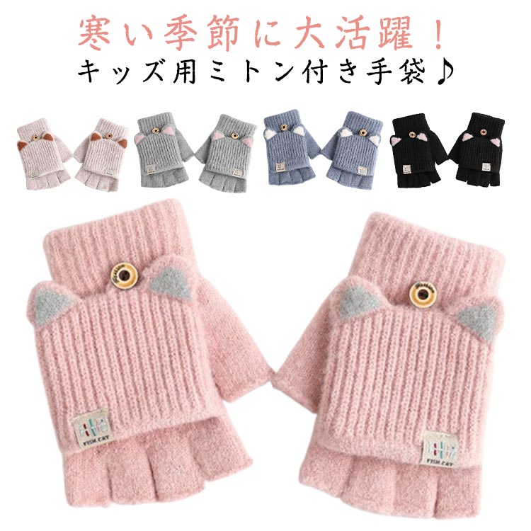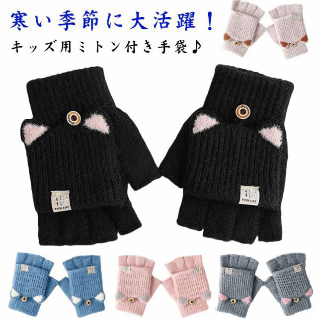 ニット手袋 手袋 ミトン 女の子 キッズ グローブ 手ぶくろ 裏ボア スマホ対応 2way 子供 子ども こども 指なし手袋 小学生 おしゃれ 可愛い 雪遊び 防寒対策 あったか 小学校 低学 暖かい