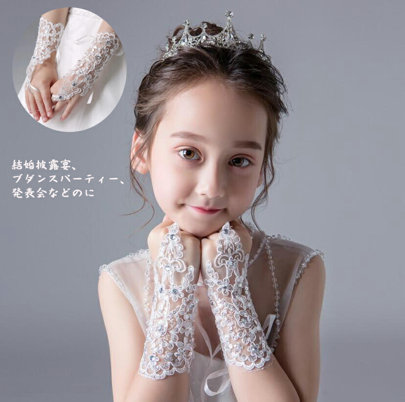 手袋 キッズ コスプレ ウェディンググローブ ハロウィン 女の子 リボン グローブ 二次会 披露宴 パーティー クリスマス フォーマルドレス