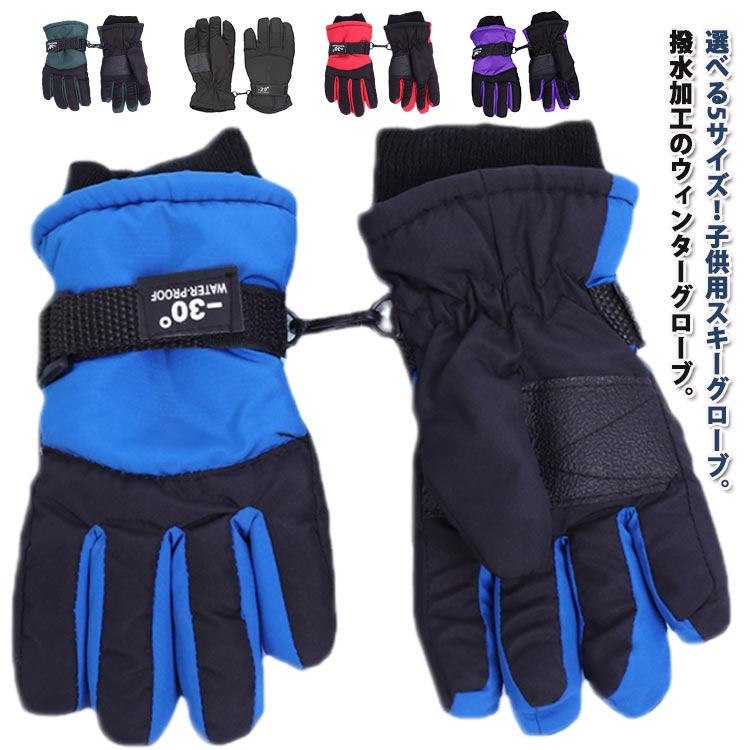 スノー手袋 ジュニア キッズ スノーグローブ 裏起毛 9歳 3歳 4歳 5歳 6歳 7歳 8歳 5本指手袋 スキーグローブ 滑り止め付き スキー手袋 5指 雪遊び アイススケート 防水 子供