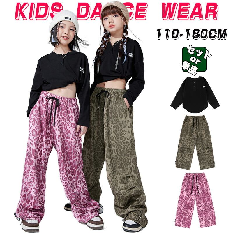 ヒョウ柄 カーキグリーン ピンク JAZZ カーゴパンツ ロングパンツ 女の子 男の子 ゆったり ダンスパンツ チア チアガール 韓国 K-POP キッズ ダンス衣装 単品 黒 長袖 ト セットアップ