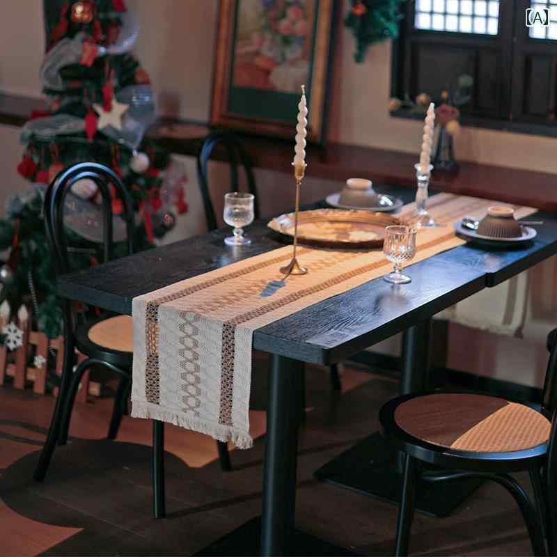 テーブルランナー 帯 地中海 エスニック フラッグ ゴージャス ダイニング ロング キャビネット カバー クロス 柔らかい タッセル 布 ランチョンマット 装飾 青 赤 オレンジ クリスマス