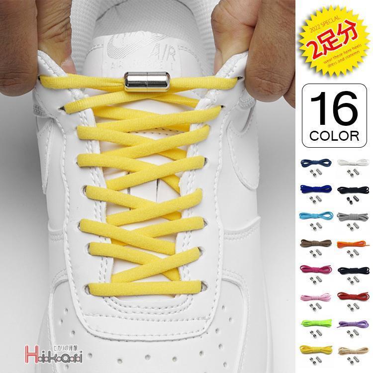靴紐 結ばない 靴ひも おしゃれ スニーカー 紐 2足分 ゴム紐 くつひも 伸びる シューズ 解けない 父の日 履きやすく