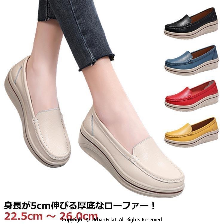 レディース スリッポン ローファー 疲れない 5cm パンプス 厚底シューズ 防滑 滑り止め 春秋 革靴 走れる 痛くない お 歩きやすい