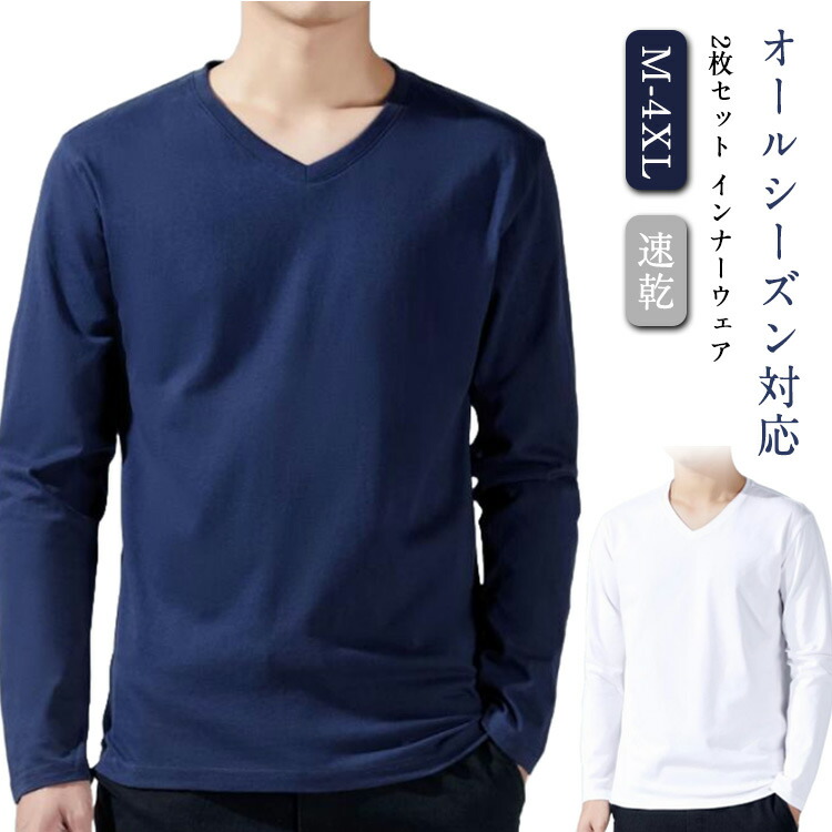 インナーシャツ メンズ 肌着 メンズ 長袖 ネック シャツ 2枚 暖かい 下着 防臭 速乾 白 ドライ 父の日 メンズインナー 送料無料