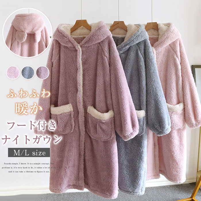 ★ 送料無料 ★ ガウン バスローブ 冬 ルームウェア 着る毛布 パジャマ ワンピース レディース 長袖 ナイトガウン 風呂上がり 着心地 寝巻き 女性用 ふわふわ もこもこ