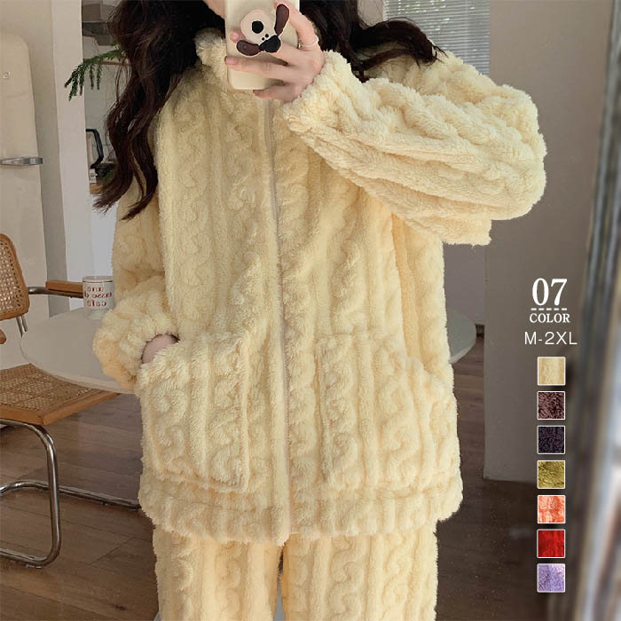 もこもこ パジャマ レディース ルームウェア パンツ 秋冬 ベロアパジャマ ベロア 厚手 春 切り替え 長袖 2点セット ナイト 寝間着 寝巻き 上下セット 前開き 快適 ゆる 大人 寒さ対策