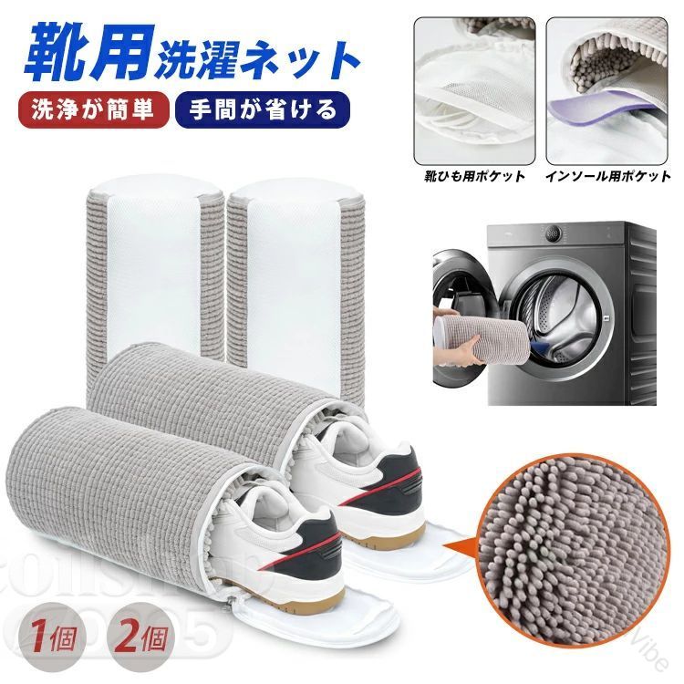 1個 2個 紐・インソール専用ポケット付き 靴洗濯ネット 家庭用 上靴 厚手 保護ネット グレー 洗える 靴洗い 上履き用 洗濯ネット 靴洗い用ネット 1個 2個 繰り返し使える 洗濯機で洗える