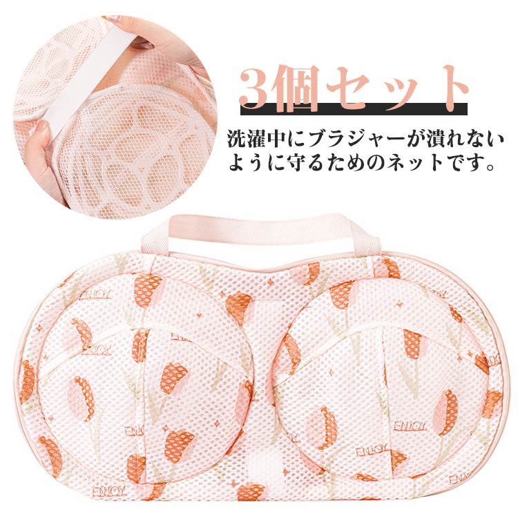 洗濯ネット ブラジャー専用 3個セット ブラジャーネット メッシュ生地 枠付き ドラム式 洗濯機 型崩れ対策 型崩れ防止 乾燥機対応 ハンドル付き 下着 通気性 水切り 家庭用 手洗い不要