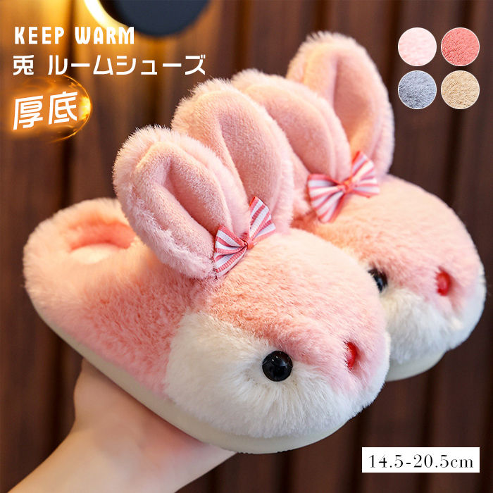 14.5cm-20.5cm 兎 ウサギ ルームシューズ ムートンスリッパ キッズ 子供 子ども 靴 シューズ スリッパ 冬スリッポン かかとなし 女の子 男の子 秋 冷え対策 室内 部屋履き 冬
