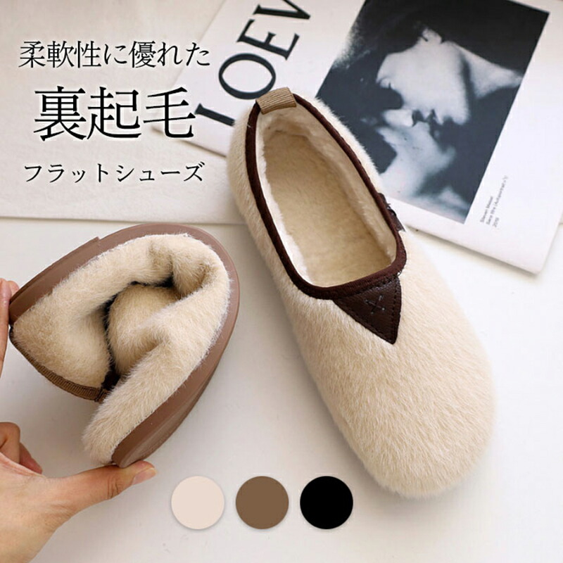 裏起毛 レディース ぺたんこ パンプス 裏起毛シューズ スリッポン 裏ボア フラットシューズ フラットソール ラウンドトゥ シューズ 靴 お洒落 楽チン カジュアル もこもこ ふわふわ 秋 キレイめ