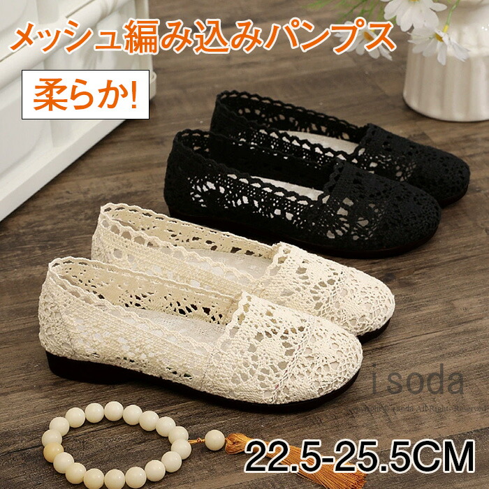 スリッポン パンプス 柔らかい 編み込み レディース ニット ぺたんこ 脱げない シューズ ジュート メッシュ ゆったり 婦人靴 通気性 歩きやすい おしゃれ メッシュパンプス カジュアルシ 痛くない