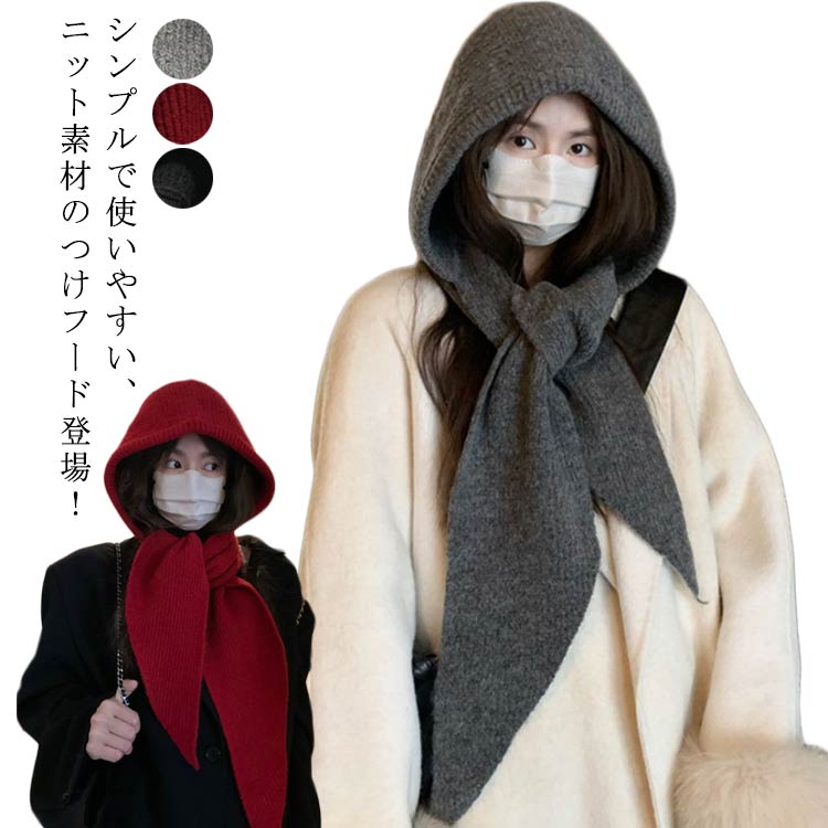 ニット ネックウォーマー 防風 ニット帽子 レイヤード 防寒 ニット帽 無地 ニットキャップ 付き 秋冬 フードウォーマー 付けフード つけ襟 スヌード 暖かい 冬 重ね着 帽子 秋 アウトドア 大人