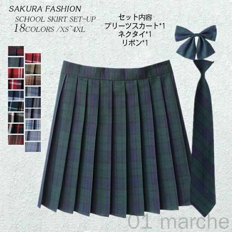 3点セット スカート ネクタイ ボウタイ 制服 チェック 大きいサイズ スクールスカート プリーツスカート ギンガムチェック 学生服 女子高生 コスプレ 高校生 中学生 お セーラー服
