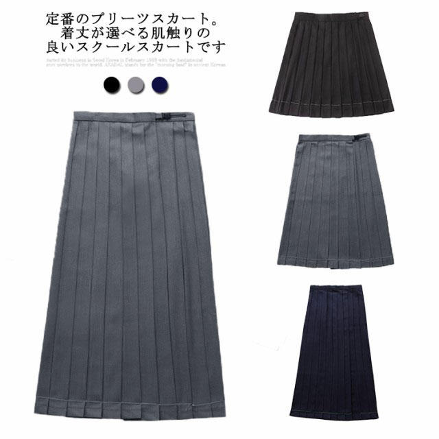プリーツスカート 制服 膝丈 膝下 学生 中学生 高校生 女子高生 女の子 ハイウエスト