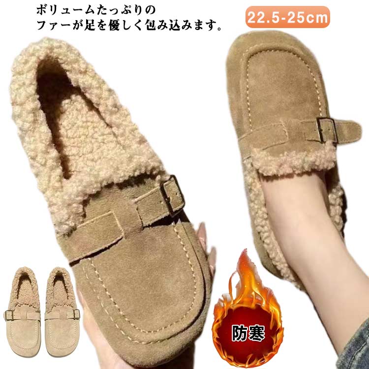 パンプス ファー付き スリッポン レディース モカシンシューズ 冬 綿靴 裏起毛 防寒 スノーシューズ フラット ふわっふわ 防風 大きいサイズ 歩きやすい 女性 コンフォートシューズ s 履きやすい