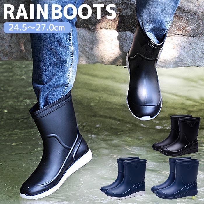 レインブーツ メンズ レインシューズ おしゃれ ブーツ ショート 丈 防水 長靴 梅雨 台風 対策 雨