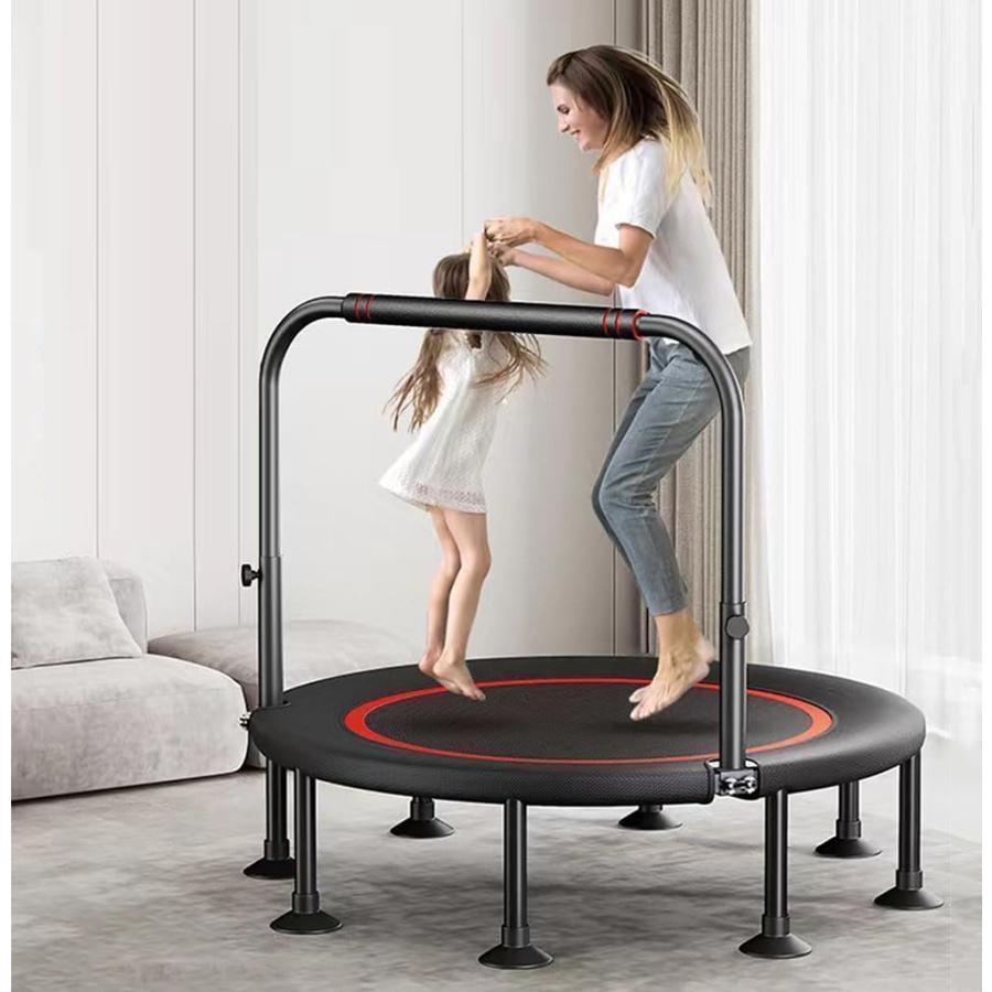 トランポリン 室内 八本足子供大人兼用 手すり3段階調節 トレーニング エクササイズ あそび 耐荷重300kg 折りたたみ式 収納便利 家庭用