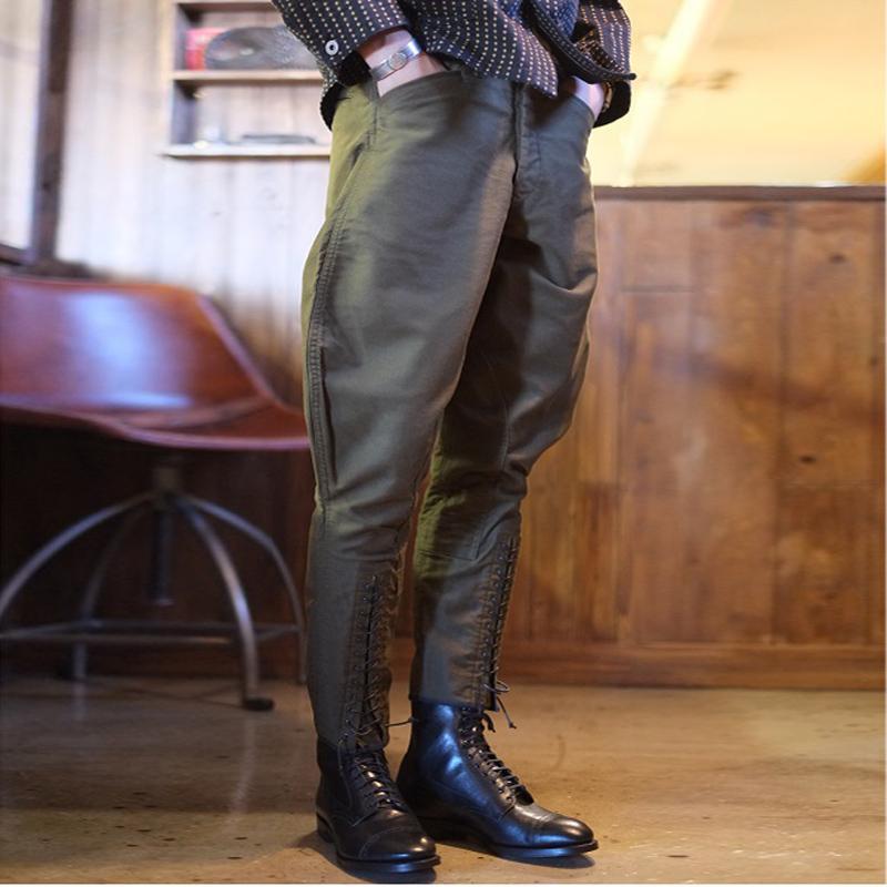 乗馬ズボン メンズ レディース 綿 ツイル 9分丈 レースアップ ポケット 厚手 手洗い可 レトロ カジュアル 黒 緑 大きいサイズ ストリート