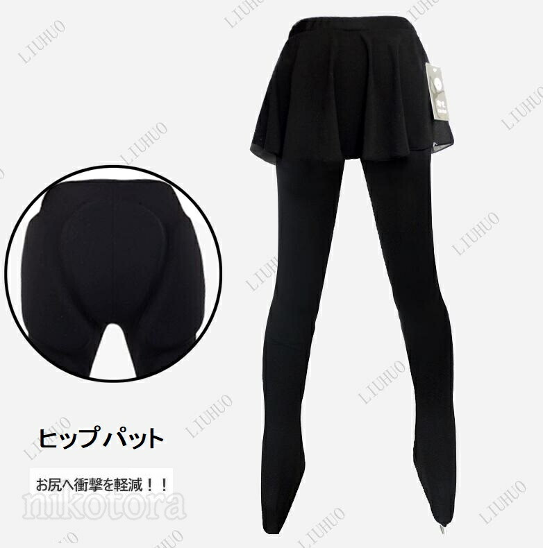 フィギュアスケート スカート付き パンツ ロング丈 ヒッププロテクター アイスパンツ キッズ 女の子 フィギュア スケート衣装 大人 女性 スケート レギンス 無地 スケートウエア