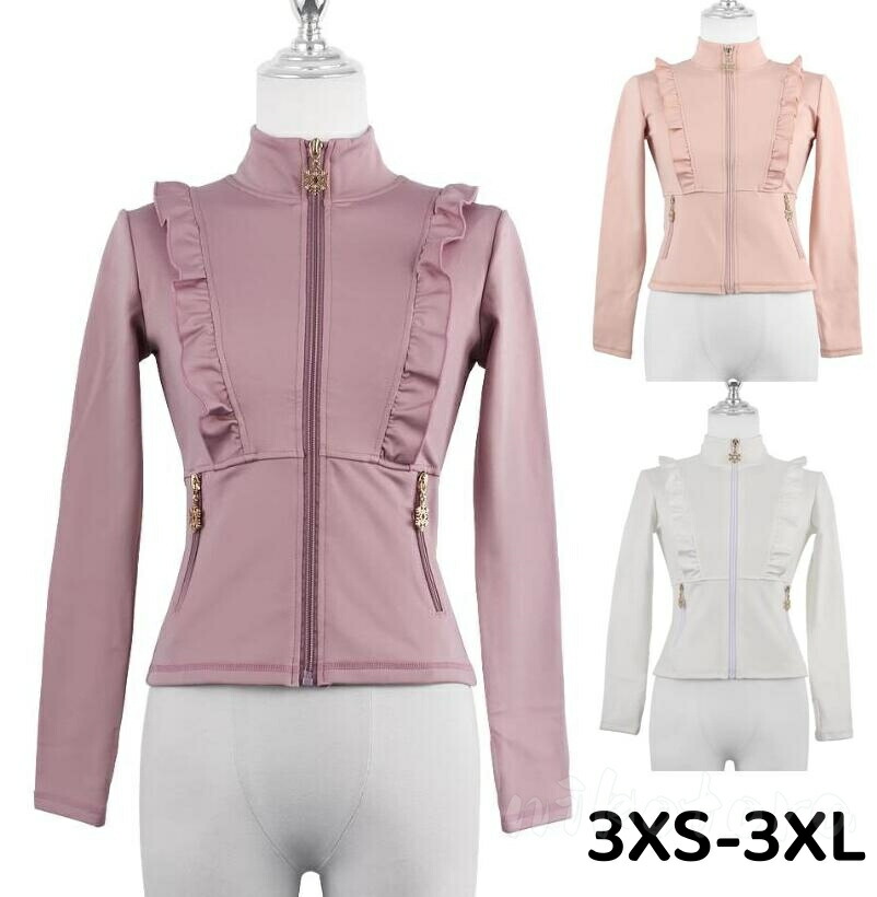 3色 トップス ジャケット 単品 レディース 子供 女の子 長袖 ジップアップ パーカー 無地 カジュアルコート フィギュアスケートウエア スケート衣装 アイス上着 練習トップス スケートウエ 練習服