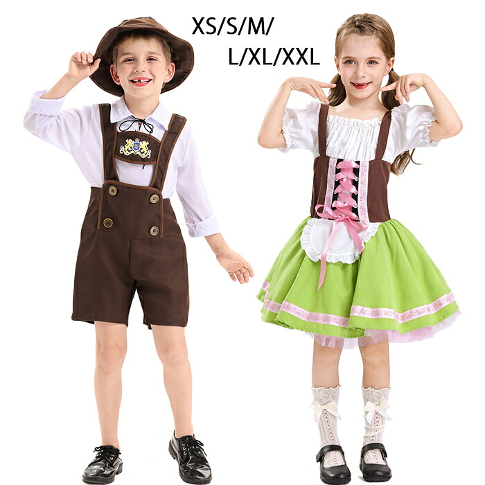 ハロウィン 衣装 子供 ビールガール衣装 ドイツ風 メイドコス ビールボーイ ドイツ 民族衣装 男の子 女の子 仮装 ワンピース 可愛い 子どもドレス コスチューム 変装 メイドワンピース