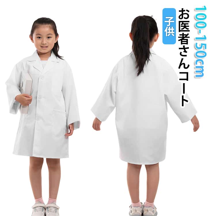 100-150 お医者さんごっこ キッズ ドクターコート 医者 獣医 コスプレ ハロウィン 仮装 診察 科学者 博士 実験 診察衣 実験衣