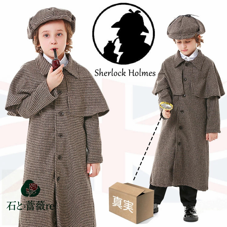 探偵 ハロウィン 衣装 コスプレ 子供 男の子 女の子 名探偵 仮装 小学生 ロングコート ハロウィン衣装 キッズ おもしろ パーティー 演出 拡大鏡 パイプ 誕生日